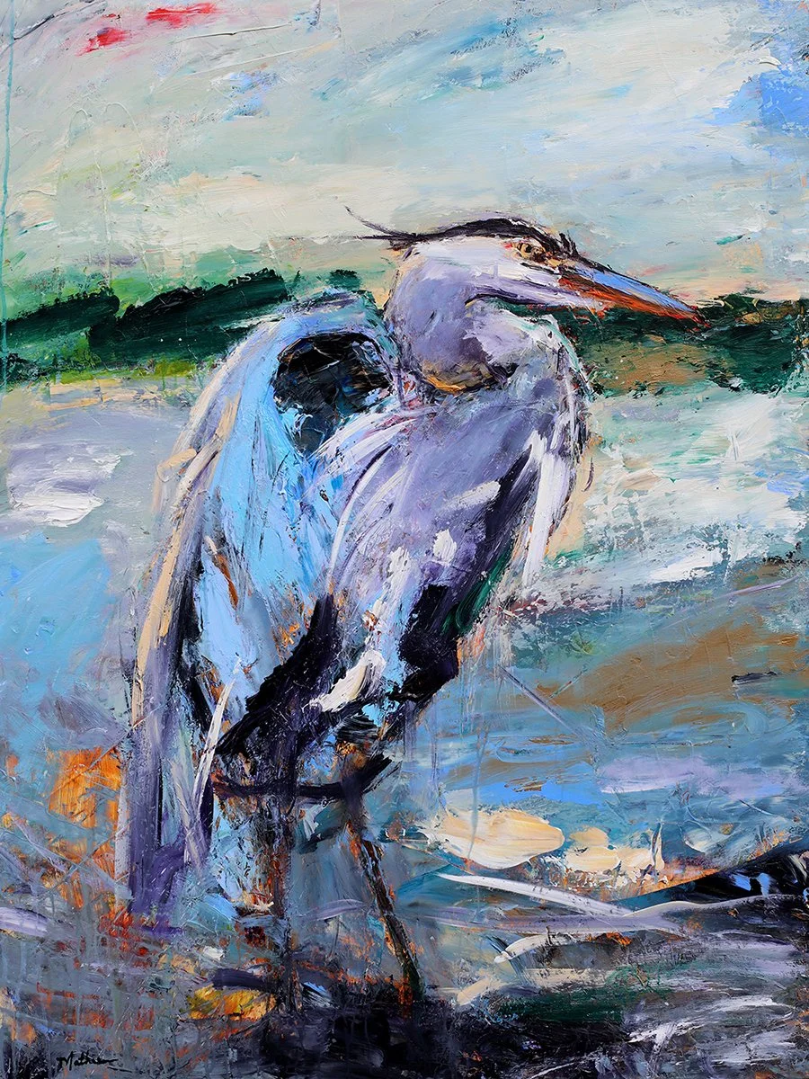 “Lucky Heron,” Acrylic, 40 x 30 inches